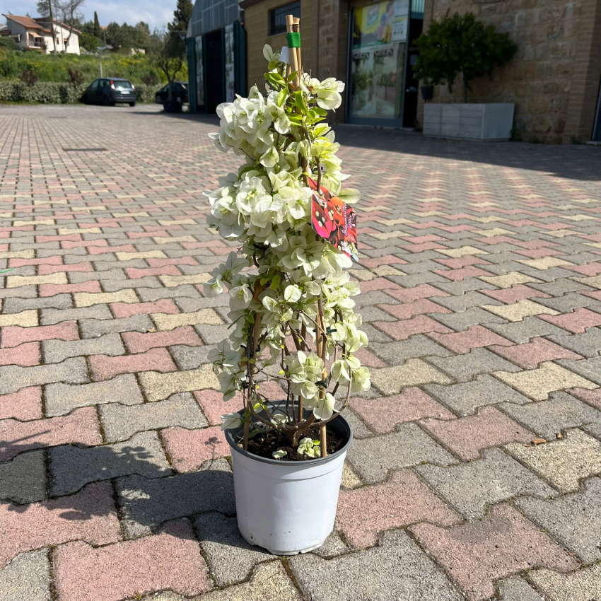Perfetta per adornare pergolati, balconi, muri e recinzioni, crea un effetto scenografico con il suo fogliame fitto e le brattee colorate che avvolgono piccoli fiori bianchi.