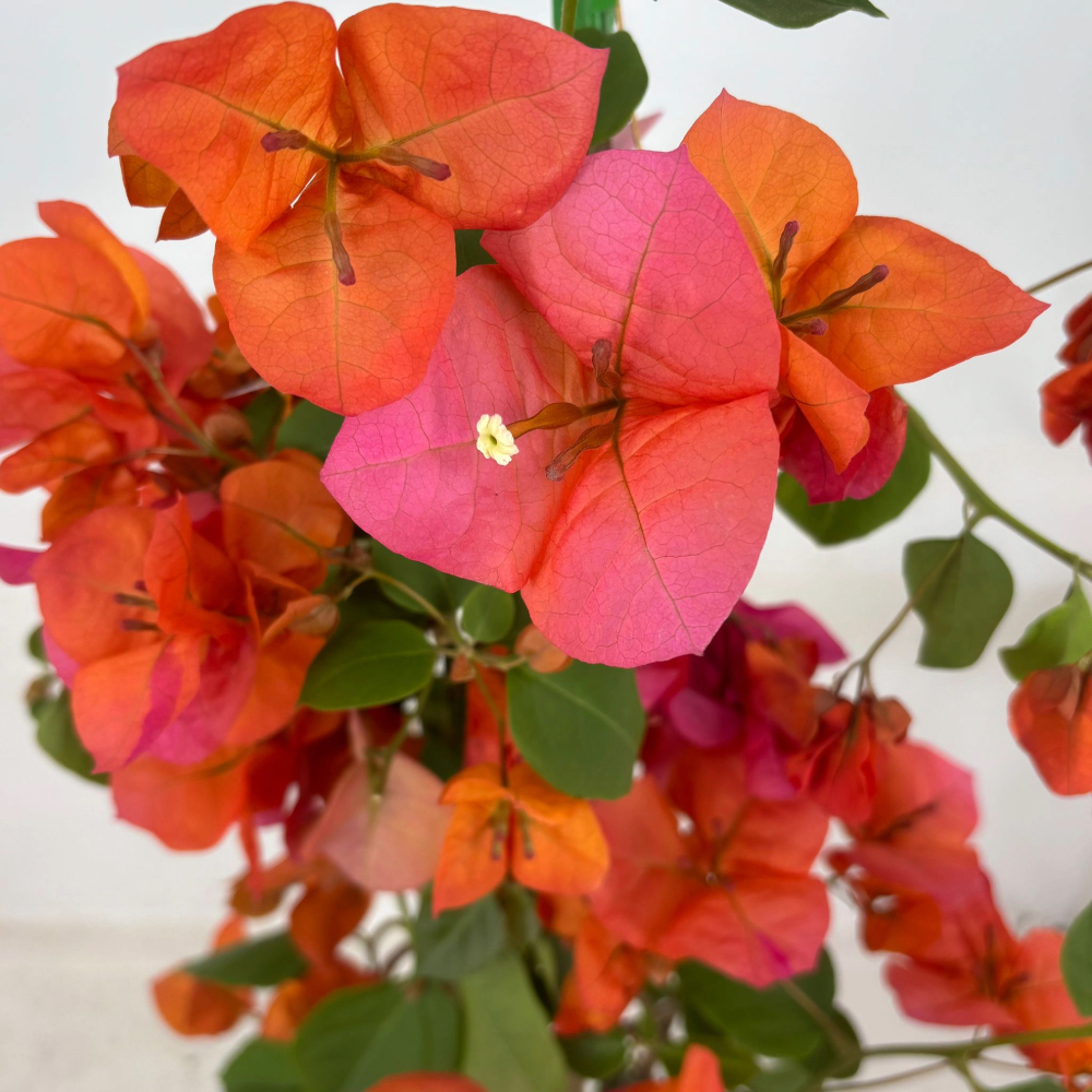 Perfetta per adornare pergolati, balconi, muri e recinzioni, crea un effetto scenografico con il suo fogliame fitto e le brattee colorate che avvolgono piccoli fiori bianchi.