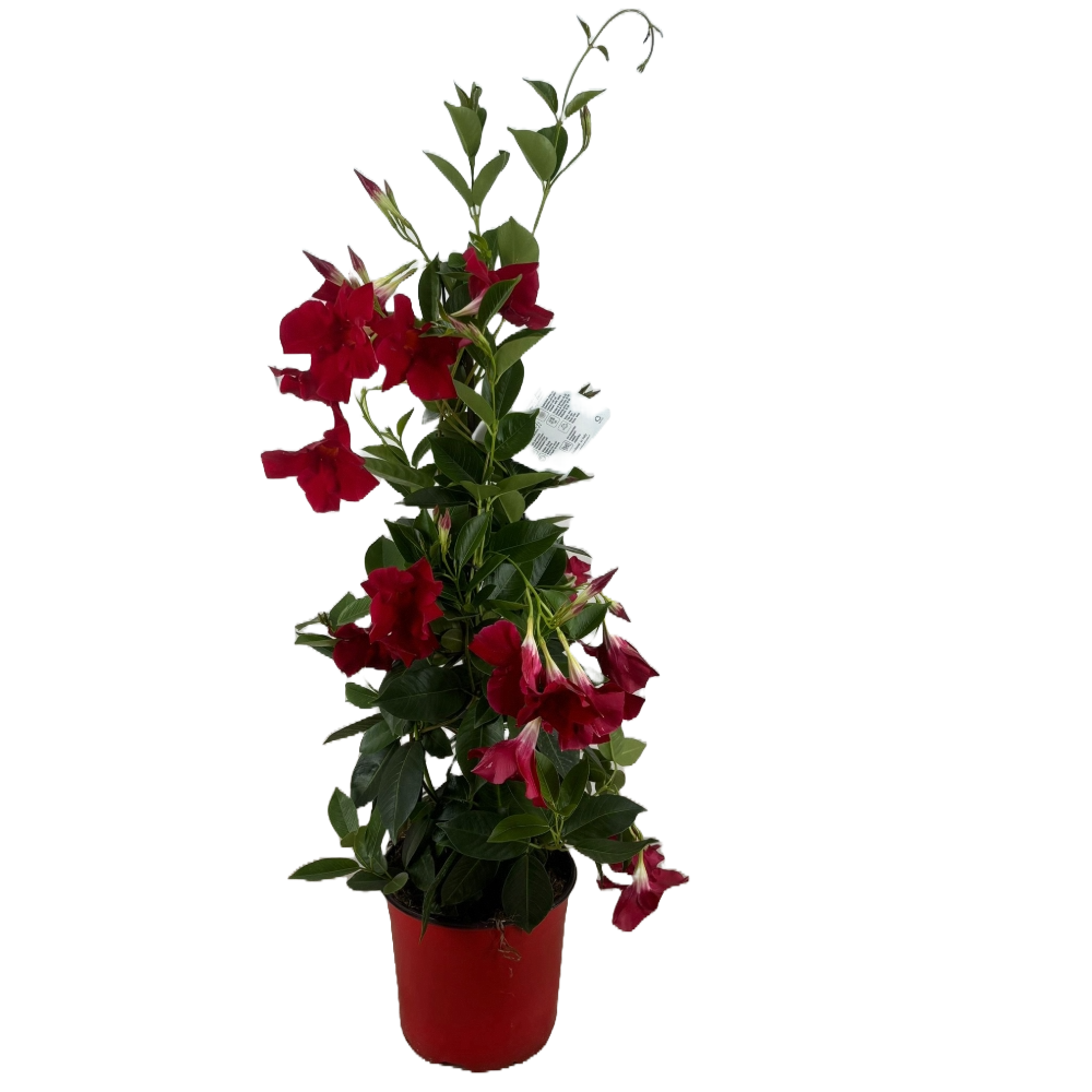 La Dipladenia, con i suoi fiori a trombetta dai colori vivaci (rosso, rosa, bianco), è perfetta per decorare balconi, terrazzi e giardini. Cresce in forma cespugliosa o rampicante, aggiungendo un tocco tropicale elegante.