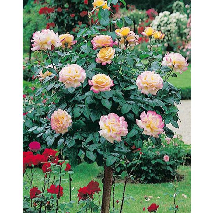 Ideale per arricchire giardini, bordure e terrazzi con un’atmosfera romantica. La pianta ha un portamento ordinato, accompagnato da un fogliame verde scuro lucido che valorizza ulteriormente i fiori. Apprezzata per la buona resistenza alle malattie e la facilità di coltivazione, è adatta sia a coltivatori esperti che amatori. Una rosa firmata Meilland, simbolo di qualità e fascino senza tempo.La rosa MME A. Gioia Pace è la più coltivata e famosa al mondo. Fu data in dono ai 49 delegati che si riunirono a San Francisco nel 1945 per fondare l’Organizzazione delle Nazioni Unite (ONU). Premi ottenuti: La rosa Gioia Pace ha ottenuto l’AARS (All-America Rose Selections) ovvero il più alto riconoscimento negli USA. Successivamente è stata eletta “rosa favorita del mondo intero”.Attenzione: Il colore del vaso potrebbe variare rispetto a quello in foto.